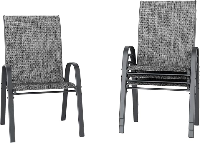 • 【OUTDOOR STACKABLE DINING CHAIRS】The stackable design allows you to both easily stack these patio chairs for compact storage, saving valuable space in your home or outdoor space. Lightweight design allows you to easily move these outdoor chairs and place them wherever you need them to be