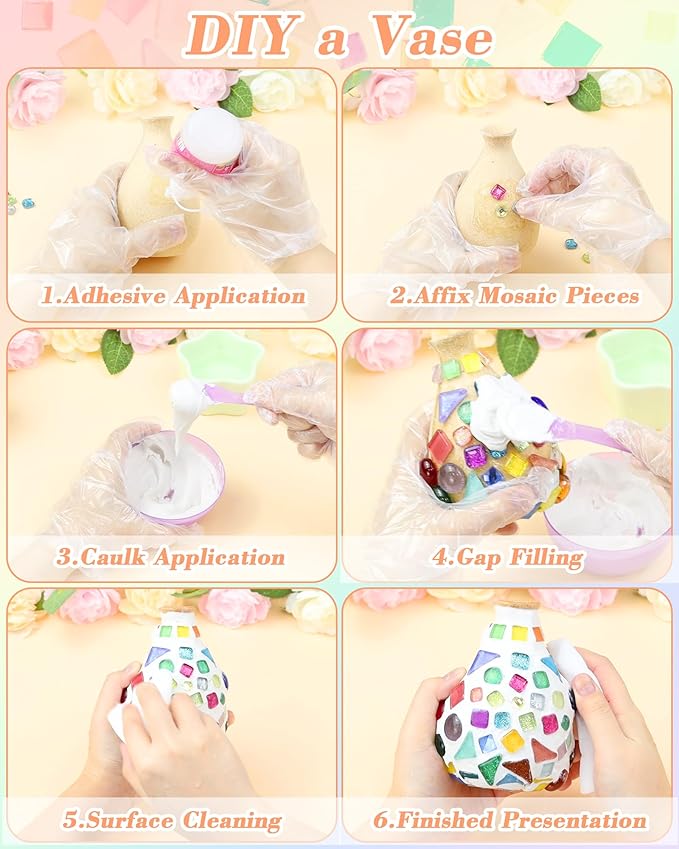 • Safe & Smooth Tiles: You will receive 280 mosaic tiles (420g) in various shapes and vibrant colors. The tiles are smooth with rounded edges, ensuring safe and easy crafting, perfect for mosaic kits and mosaic tiles for crafts.