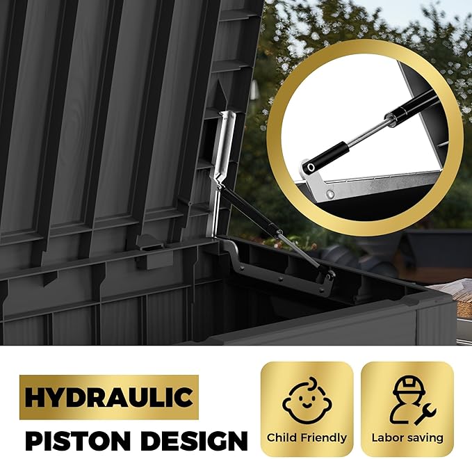 • Wide Range of Use: With a capacity of 80 gallons, this storage box can also be used as a patio seat, storage bench or footstool, whether it's family party supplies, camping equipment, gardening tools.