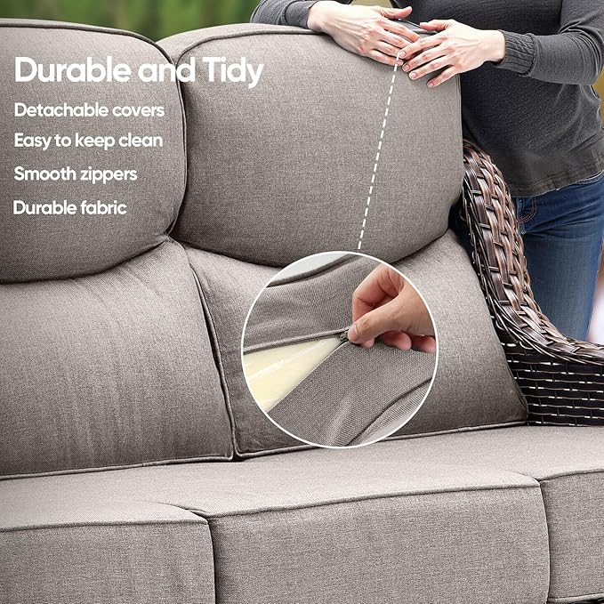 • 【DELUXE SMILE SHAPED CUSHION】: This wicker rocking chair has a 22-inch high backrest, the 6-inch cushion of the patio rocker swivel chair is made of high-density 28D foam, which strikes an ideal balance between softness and support, and its quick rebound feature maintains long-lasting shape and comfort, and the backrest is made of three-dimensional spacer cotton for effective pressure relief. The cushion cover is made of premium OLEFIN fabric that is sun, water and fade resistant and is more comfortable and durable than regular polyester fabrics.