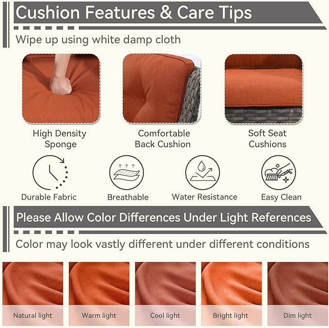 • [Easy-Clean Cushions] Wipe with a white damp cloth for easy clean. Allow for color differences in different ambient light and displays