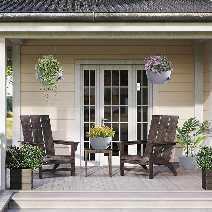 • 【Package Content】12 Inch Self-Watering Plastic Flower Pots x 2,Chain rack x 2,these Planters are easy to install and suitable for Hanging in various locations such as Balconies, Windows and Gardens
