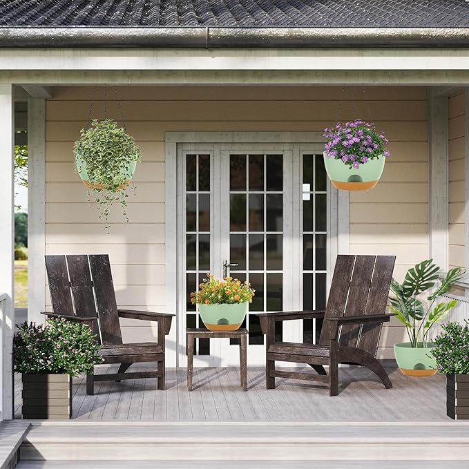 • 【Package Content】12 Inch Self-Watering Plastic Flower Pots x 2,Chain rack x 2,these Planters are easy to install and suitable for Hanging in various locations such as Balconies, Windows and Gardens