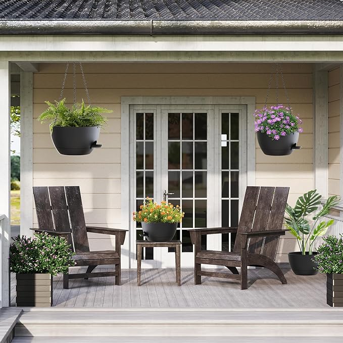 • 【Package Content】12 Inch Self-Watering Plastic Flower Pots x 2,Chain rack x 2,these Planters are easy to install and suitable for Hanging in various locations such as Balconies, Windows and Gardens