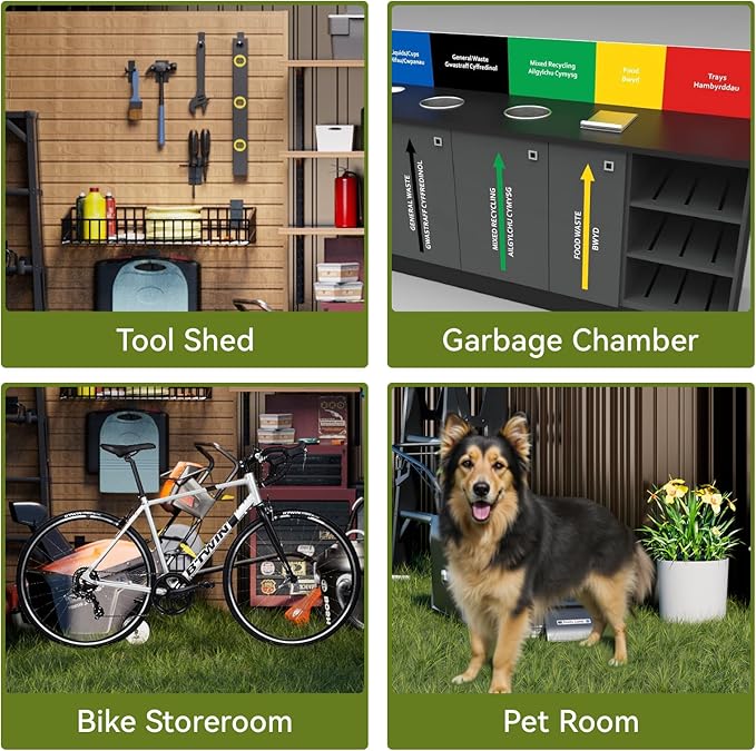 • Lockable Door and Vents:The lockable door provides security,keeps your tools away from being stolen,and avoids small animals from entering accidently;Two Top Vents for Better Airflow,Keeping the Space Cool and Odor-Free