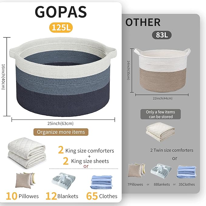 • 2 Extra large Size Multi-Purpose Blankets Basket: 25" x 16", Our Large woven rope basket for storage originally designed as a Blanket storage basket but can be used for more. You can use it as large laundry basket, large storage basket, toy basket for kids, baby toy storage basket bin.Keep in the kids room, family room, or any room in the house that could use extra storage