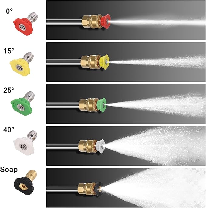 • 【1/4" Quick-Connect 】: Spray wand with 1/4" standard quick-connect end for adding surface cleaner, extension wand, undercarriage cleaner, etc. and for replacement of foam cannon and nozzle tip.
