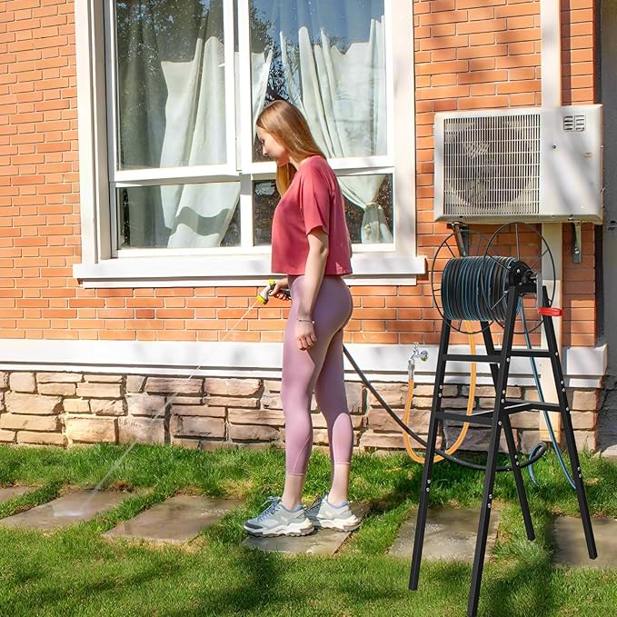 • 【New & Improved Freestanding Hose Reel –This garden hose reel features a sturdy 4-leg construction that delivers far superior stability and weight capacity compared to flimsy 2-leg models - perfect for demanding outdoor watering tasks. The freestanding design requires no drilling or installation; simply place it anywhere in your garden, patio, or yard for completely hassle-free hose storage.