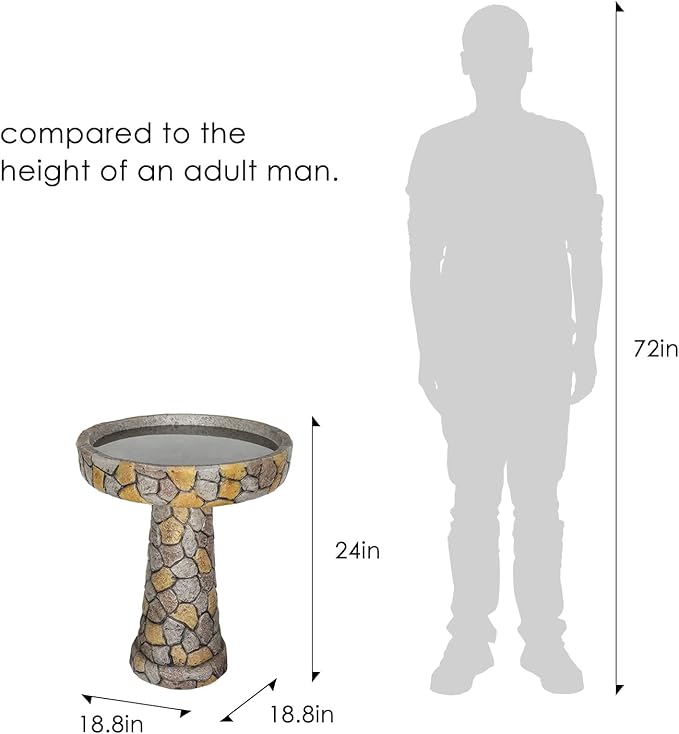 • Promotes Bird Health and Hygiene: Size in 24"H * 18.8"Φ of bird baths for outdoors helps to keep the water cleaner for longer periods by reducing the risk of contamination from ground debris. Creates a safer and more hygienic environment for birds to bathe and drink, promoting their health and well-being.