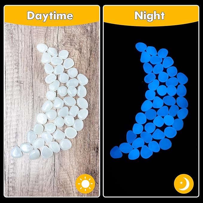 • Various Uses: These glowing pebbles are ideal as fish tank rocks, aquarium gravel, fairy garden decorations, betta fish tank accessories, turtle tank accessories, outdoor rock decor for yards, walkways, as well as for filling vases, flowerpots, and plant gardens, making your home and yard incredibly beautiful.