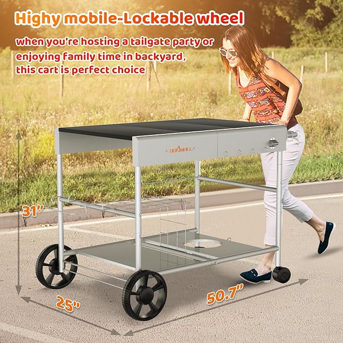 • 【Built to Last】Made of heavy-duty metal and with solid support of grey-coated steel tube 【What you get】Outdoor Cart*1 【Large Dimensions】25"W×50.7"L×31"H This portable kitchen companion is ready to serve you whenever and wherever you need it ► If you need the cart table cover for this cart, please search this ASIN "B0D3LDY8HS", you will get