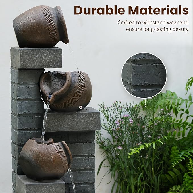 • Soothing Cascading Water Flow – The gentle sound of water flowing from pot to pot helps create a calming environment, perfect for stress relief, meditation, or enhancing your home's curb appeal.