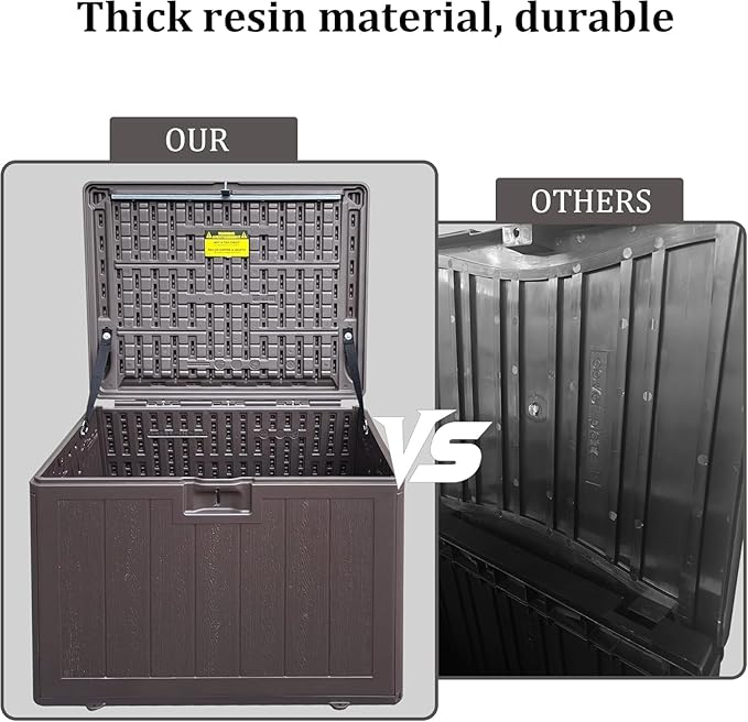 • Material: The patio outdoor storage box is made of the latest high-quality resin material, which makes this patio deck storage box waterproof,UV-resistant, anti-fading, and anti-bending protection, suitable for long-term outdoor use.