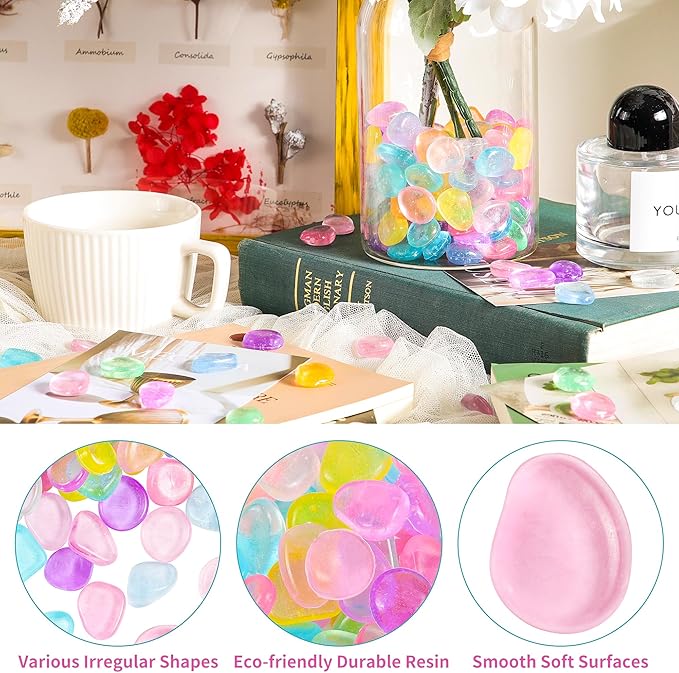 • Package Include: 150PCS luminescent stones with a size of approximately 2cm. Decorate them to your idea.