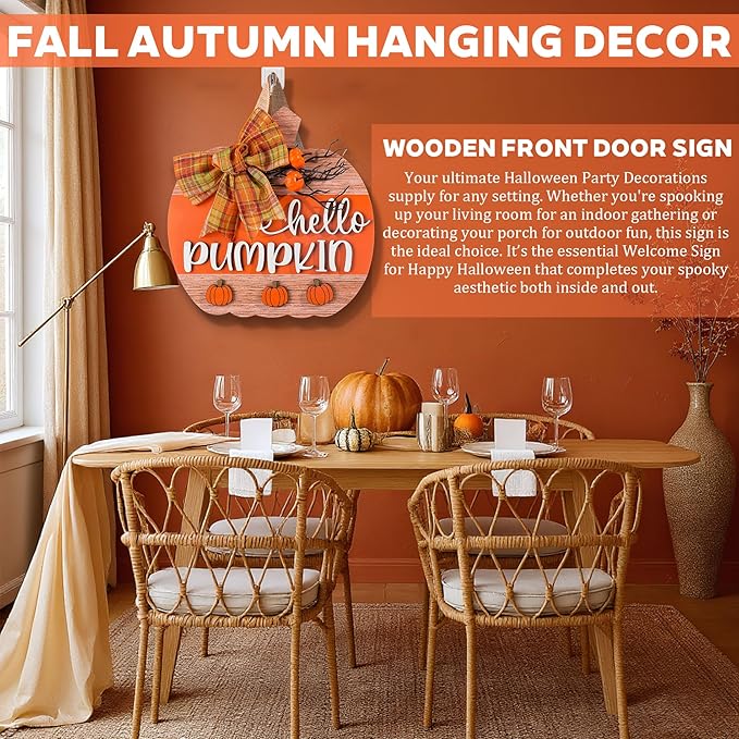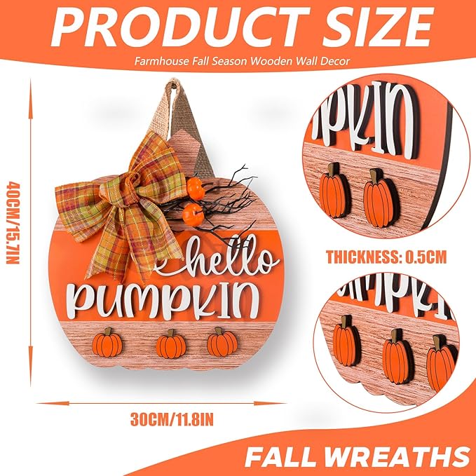 • 【Seasonal Front Door Decor】:Elevate your autumn ambiance with our Fall Outdoor Wreath design! This Hello Pumpkin Wooden Door Sign features a rustic wreath with a cozy bow, perfect for fall wreaths for front door displays. Ideal for Thanksgiving, harvest festivals, or everyday farmhouse charm.