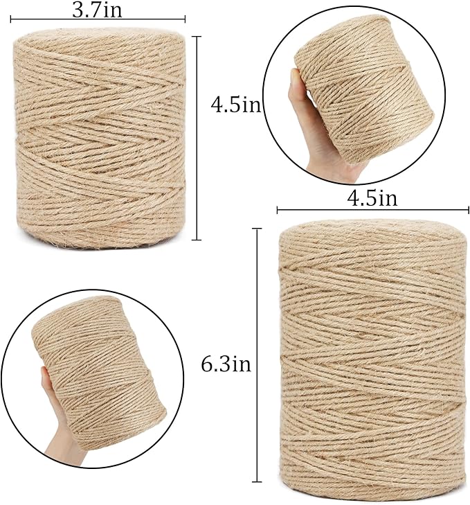 Natural Jute Twine Rope, 1000 Feet x 1/8 Inch, 6-Ply Heavy Duty for Crafts, Gardening, Gift Wrapping,Packing,Rustic Decor