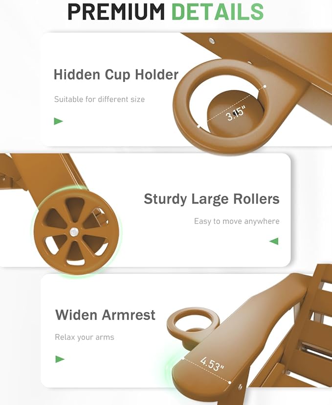 • Easy Mobility:The chaise lounge outdoor feature two large wheels, making it easy to roll to your desired spot. Perfect to rearrange your seating for optimal comfort, whether you’re hosting a gathering, or just looking to relax