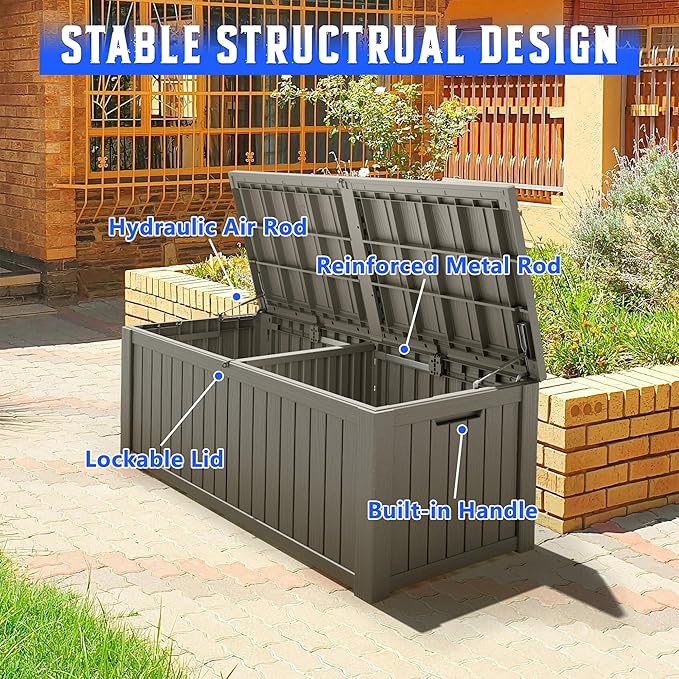 • 👍 Ample Storage Capacity for Any Need: this outdoor storage box waterproof provides a spacious 180 gallon capacity. Perfect for storing gardening tools, pool accessories, cushions, or even serving as a package delivery box, this outside storage box waterproof keeps your items neatly organized and well-protected. This versatile deck box and outdoor storage bin ensure that your belongings stay safe and dry in any outdoor environment.