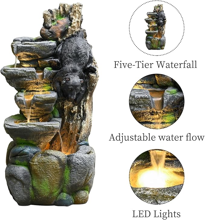 • Durable Outdoor Fountain: Made of durable weather-resistant resin with a natural stone look, which are weatherproof, rust-resistant, and resilient, ensuring your outdoor water features remain rich in artistic touch. Suitable for both outdoor and indoor use.