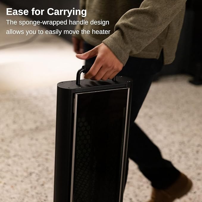 • Portable and Space-Saving-Featuring a durable handle and slim design, this heater is easy to move and fits seamlessly into any setting. Its sleek look and small footprint make it a perfect addition to patios, balconies, or indoor corners.