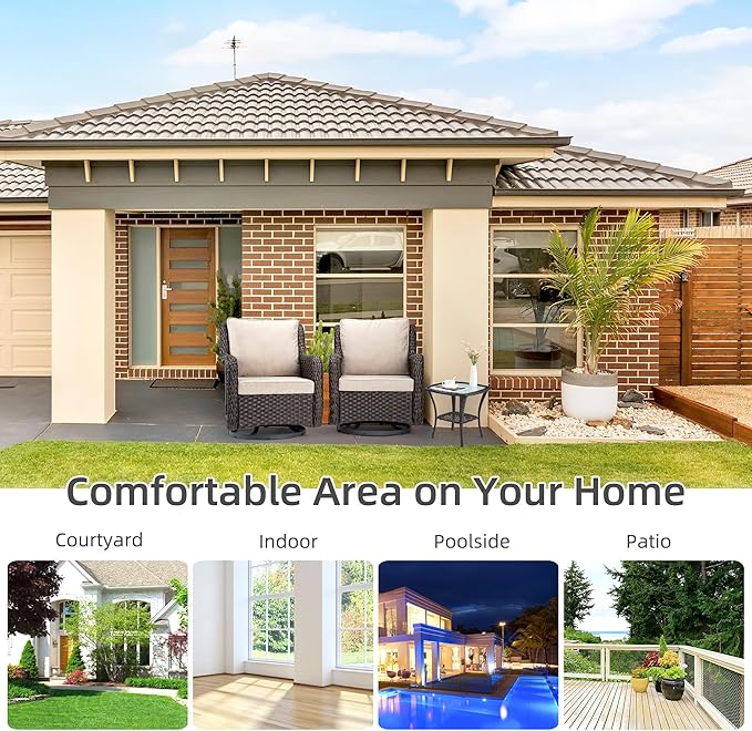 • 360° Swivel and Rocking Function: Outdoor chairs allow you to rotate a full 360 degrees and rock back and forth effortlessly. Whether you want to enjoy a sweeping view or gently sway in the breeze, our swivel rocker patio chair ensures a relaxing experience for both your body and mind