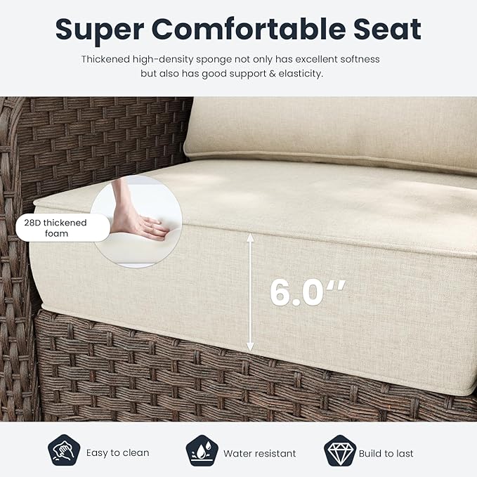• STYLISH OUTDOOR DECOR: This patio furniture set giving you the to create your ideal seating arrangement in any outdoor area, whether large or small. Its flexible design makes it the perfect choice for patios, decks, gardens, and poolside areas, allowing you to effortlessly design a layout that perfectly fits your space and lifestyle.