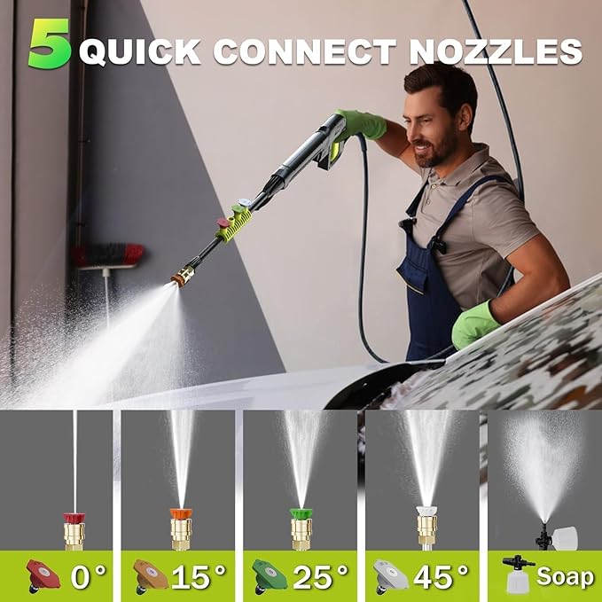Pressure Washer, 5000PSI Max 3.6GPM with Foam Cannon 35FT Power Cord 4 Nozzles for Cars, Green