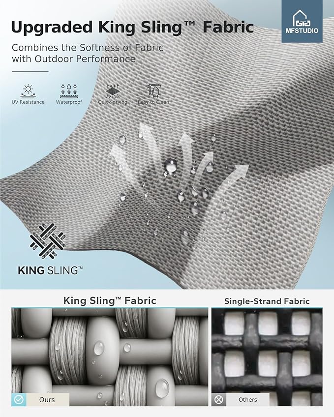 • Versatile & Maintain - MFSTUDIO patio lounge chaise is ideal for a variety of outdoor settings and easy to install. Low-maintenance Textilene fabric and rust-resistant frame lets outdoor lounge chaise all seasons available and easy to clean. Pls kindly wipe the water off and drain the water to prolong its service time