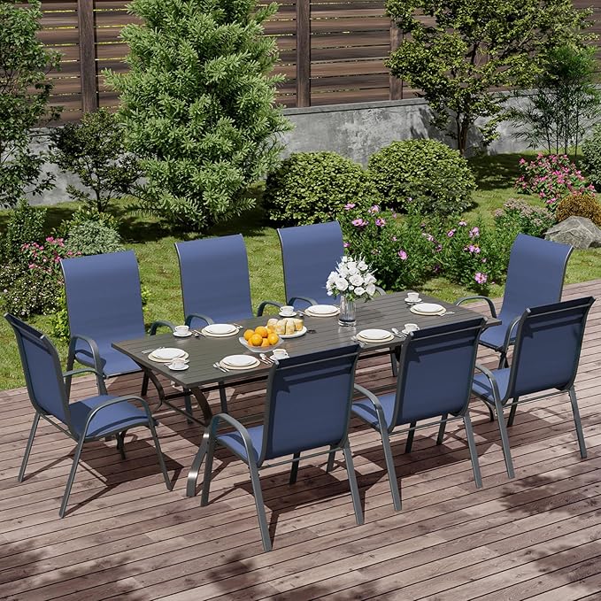 UDPATIO Patio Chairs Set of 8, Stackable Outdoor Dining Chairs with High Back, Breathable Textilene Fabric Outdoor Chair All Weather, 350LBS Capacity for Garden, Backyard (Blue)