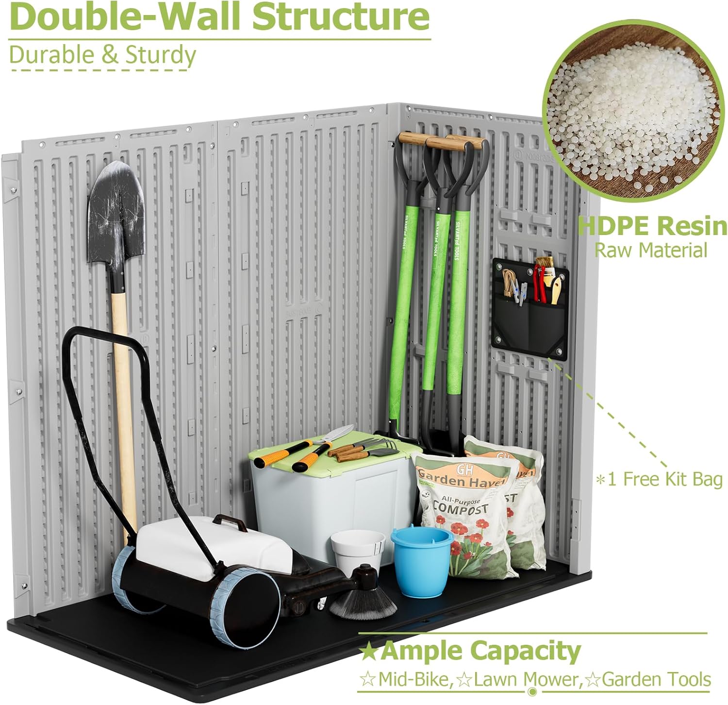 • 【Multi-purpose Storage】 Perfect for storing garden tools, Mid-bike, BBQ grills, firewood, seat cushions, lawn mower, patio & garden accessories and more.