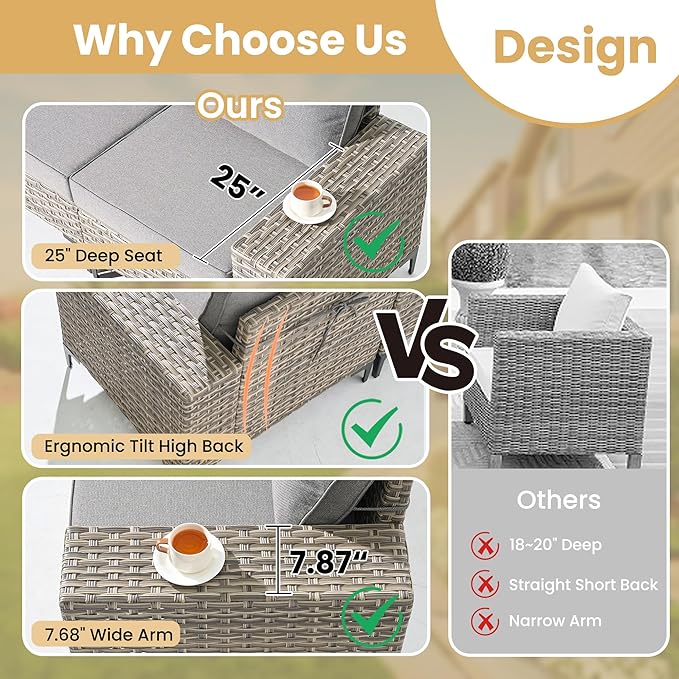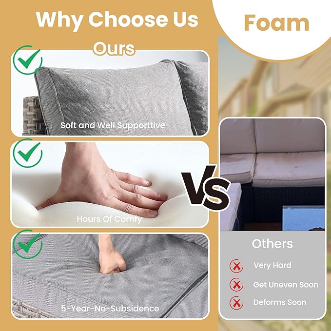 • All Weather & Durable: Selected anti-ageing treated thicken PE wicker rattan for UV resistant, wear resistant and all weatherproof. 3D strengthen and widen design for extended service life,twice service life as others