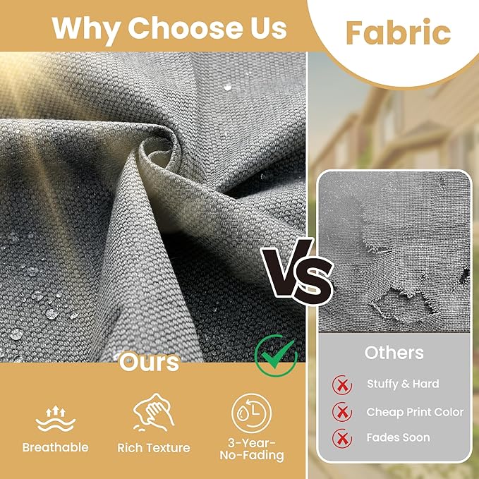 • Texture Woven Fabric: Selected yarn dyed woven fabric, the yarns are dyed and treated before woven into fabric for out door fading resistant and water repellent. Looks and touches with high-end woven texture. No more worry about getting cheaply made thin print fabric.Daily use 3 years no fading. Detachable & washable