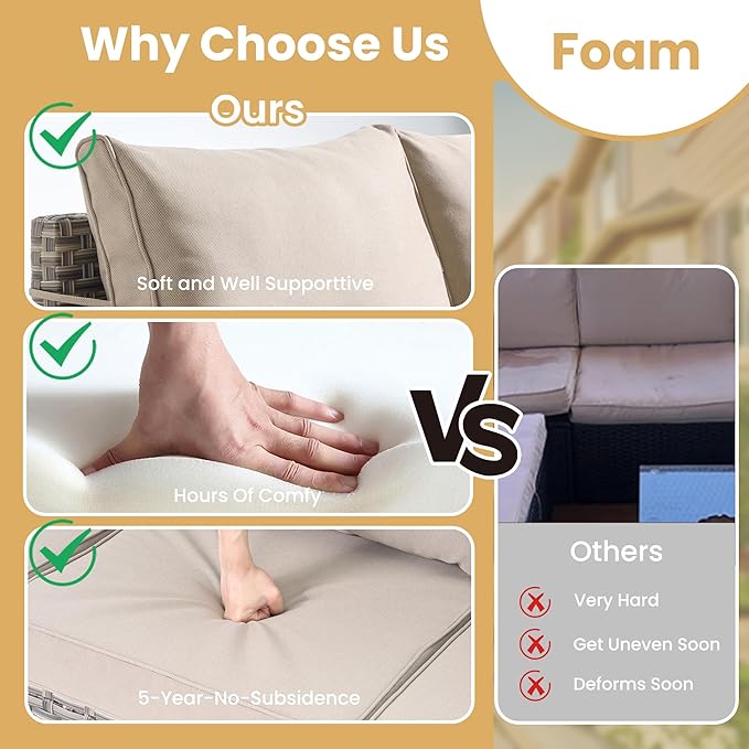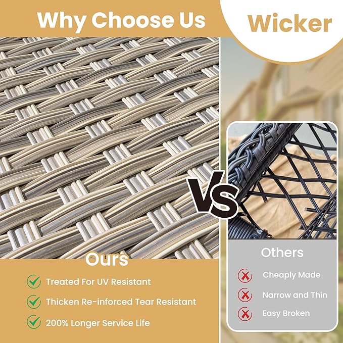 • All Weather & Durable: Selected anti-ageing treated thicken PE wicker rattan for UV resistant, wear resistant and all weatherproof. 3D strengthen and widen design for extended service life,twice service life as others