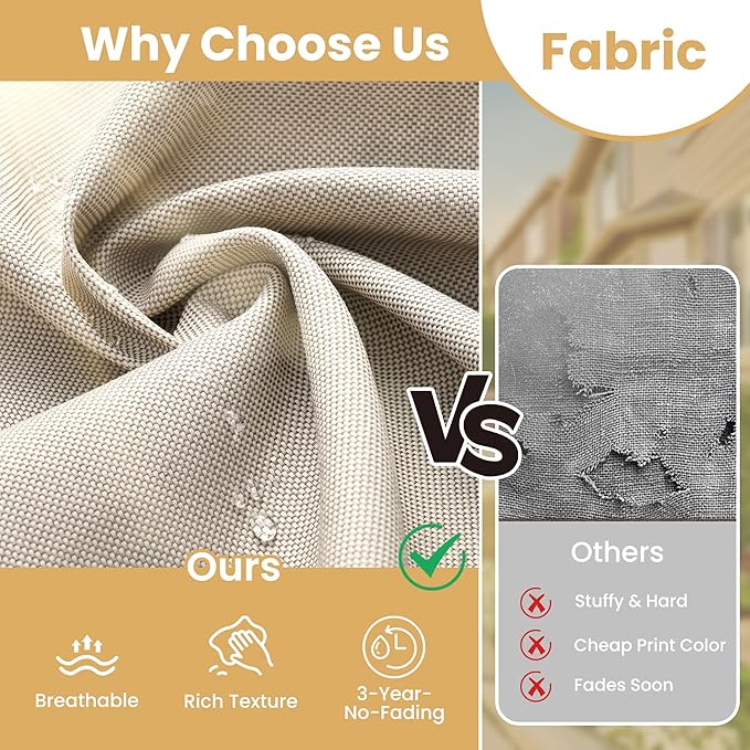 • Texture Woven Fabric: Selected yarn dyed woven fabric, the yarns are dyed and treated before woven into fabric for out door fading resistant and water repellent. Looks and touches with high-end woven texture. No more worry about getting cheaply made thin print fabric.Daily use 3 years no fading. Detachable & washable