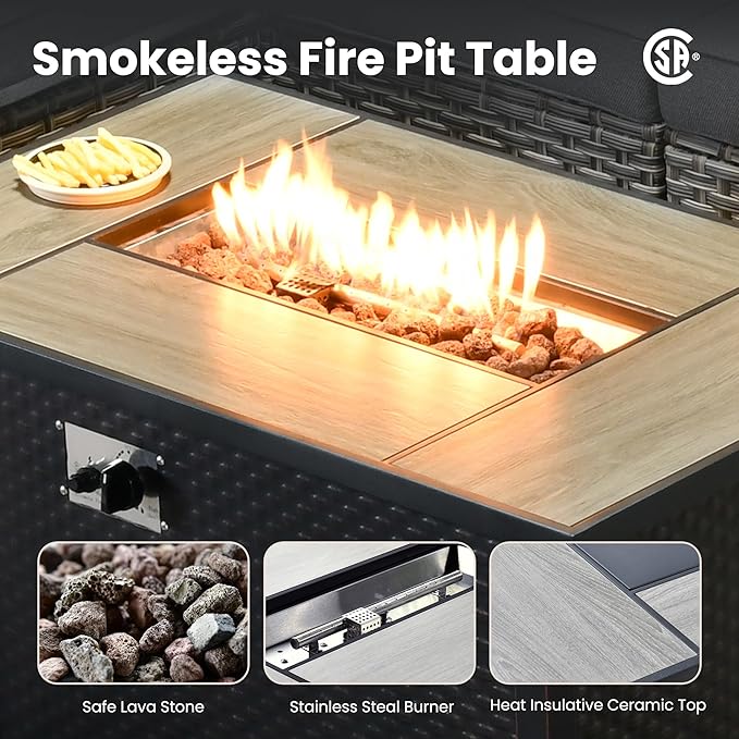 • Propane FirePit Table: CSA safety certificated, stainless steel rust-free burner, with lava stone for brighter flame and more safe,adding dancing light, atmosphere to your party.Ideal for festivals, birthdays, events,celebrations,commercial,daily use