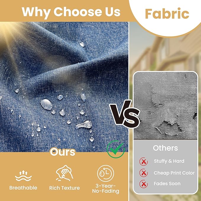 • Texture Woven Fabric: Selected yarn dyed woven fabric, the yarns are dyed and treated before woven into fabric for out door fading resistant and water repellent. Looks and touches with high-end woven texture. No more worry about getting cheaply made thin print fabric.Daily use 3 years no fading. Detachable & washable