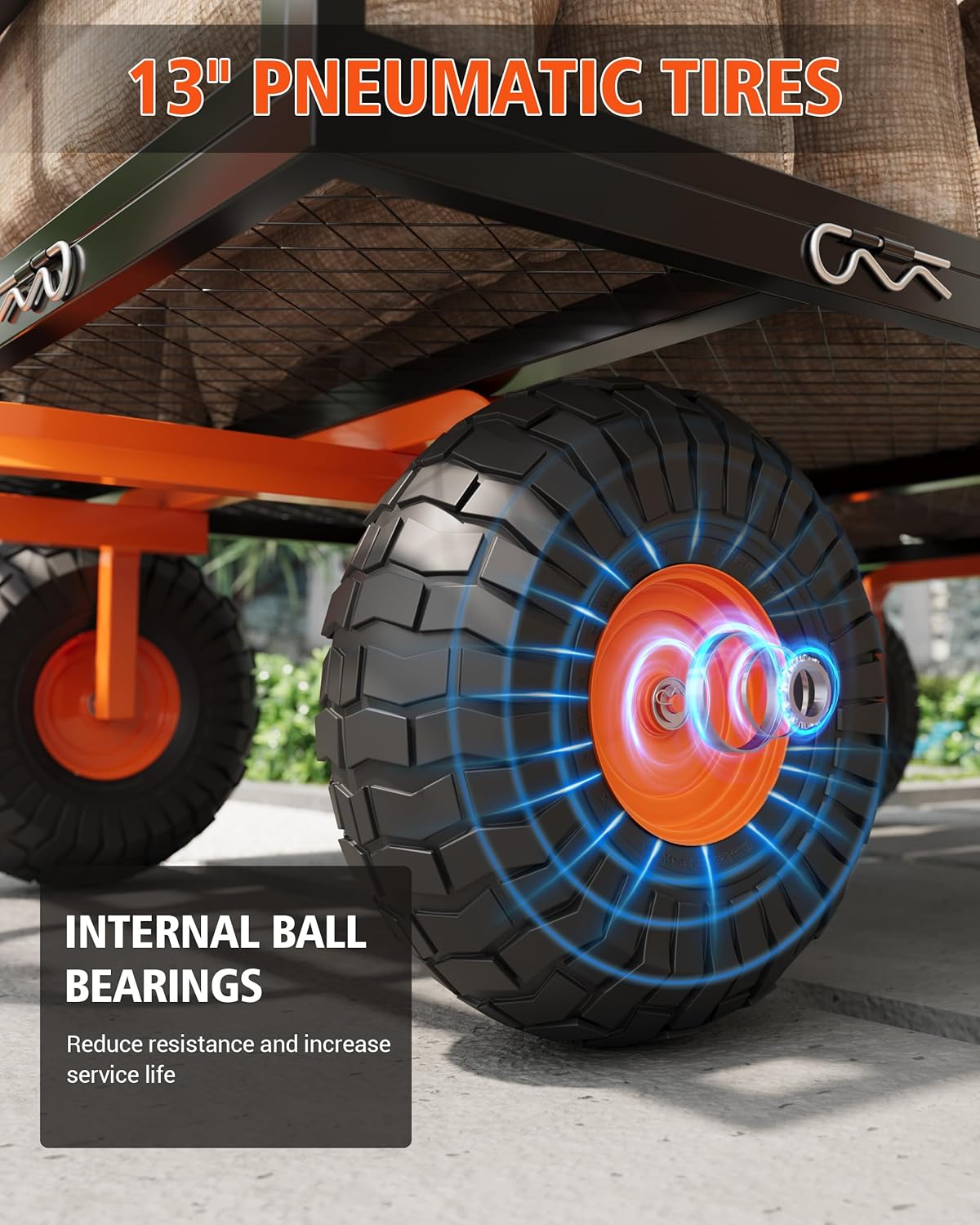 • Conquer Every Landscape: 13" silent-roll tires eat through mud and snow without rattling your tools or waking the napping baby. Wide treads stay stable on slopes and uneven paths – no more wrestling stuck wheels mid-project