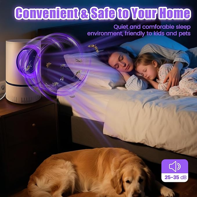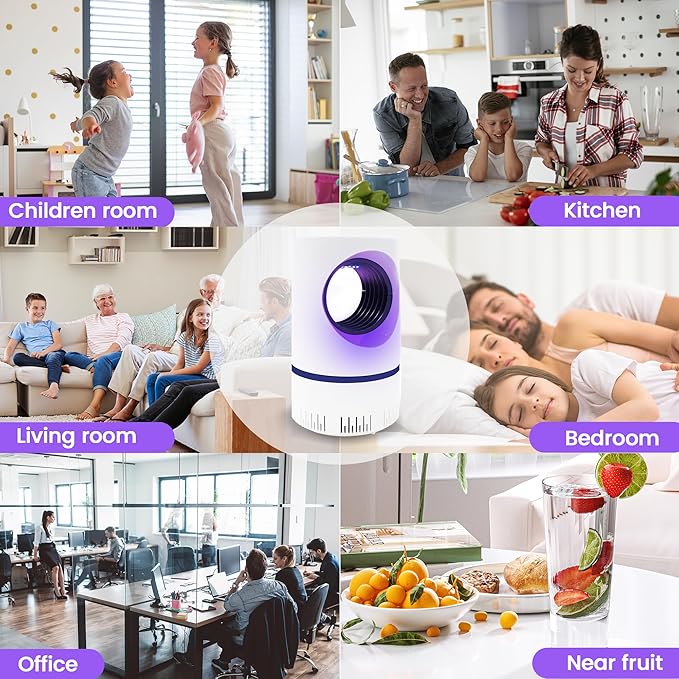 • Effective light Lure & Fan Capture – Using a 395nm light, this indoor bug zapper attracts mosquitoes, gnats, fruit flies, and moths. Once drawn close, the built-in fan gently pulls them inside and keeps them trapped.