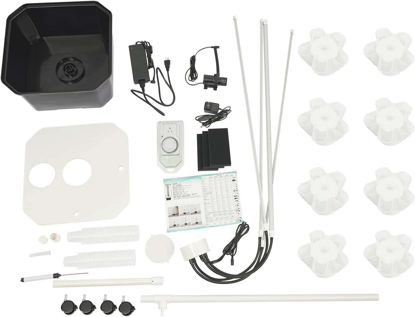 • 【AUTOMATED OPERATION & USER-FRIENDLY CONTROLS】The system runs automatically once connected to power and water, with a pump cycle of 1-minute ON / 5-minute OFF to optimize root health and resource use. A clear water level gauge enables easy monitoring, and full-spectrum LED lights support photosynthesis, suitable for all grower levels.